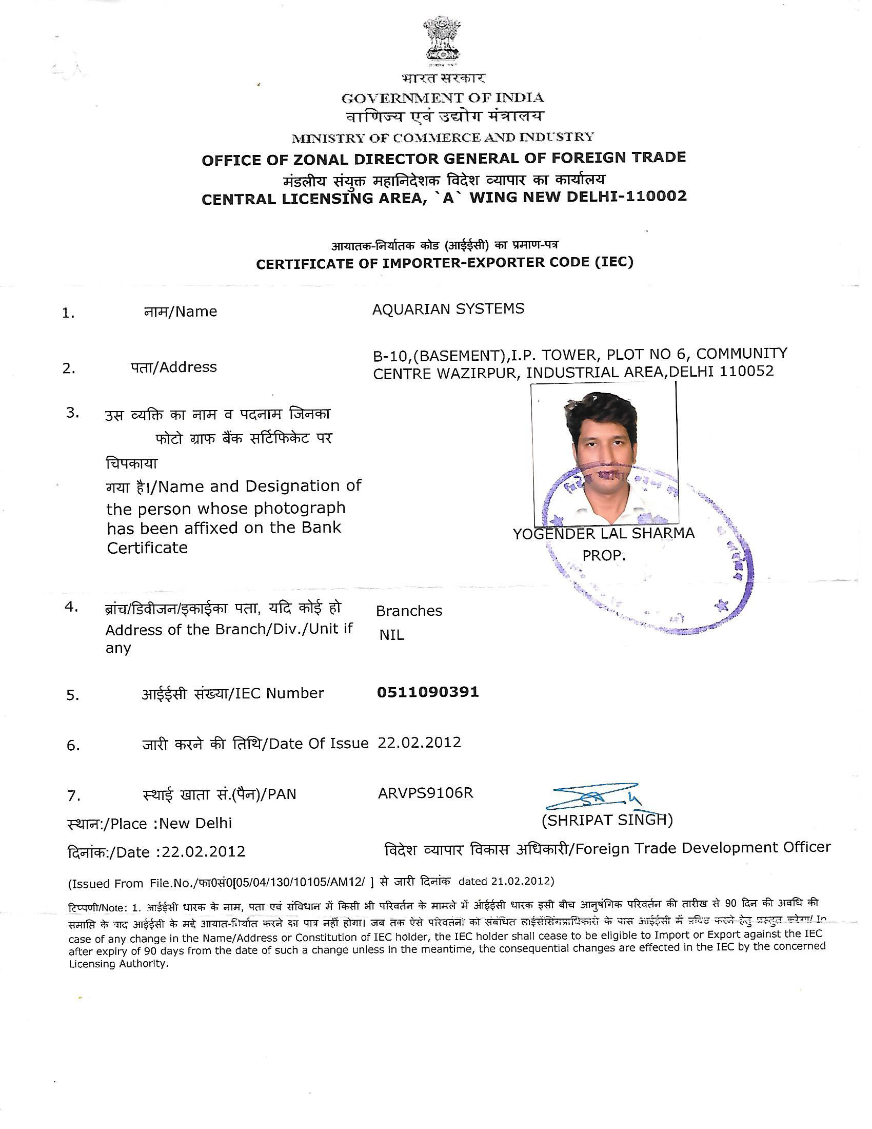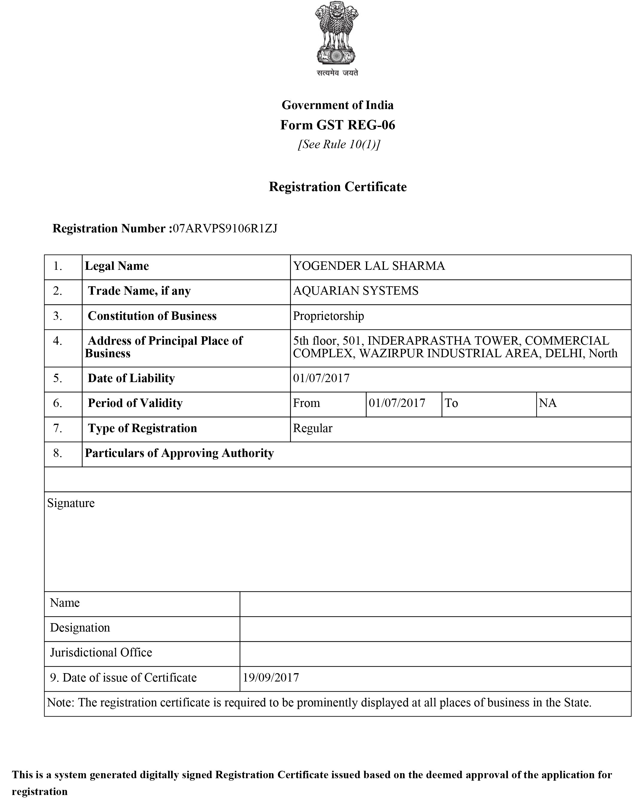 Registration Certificate